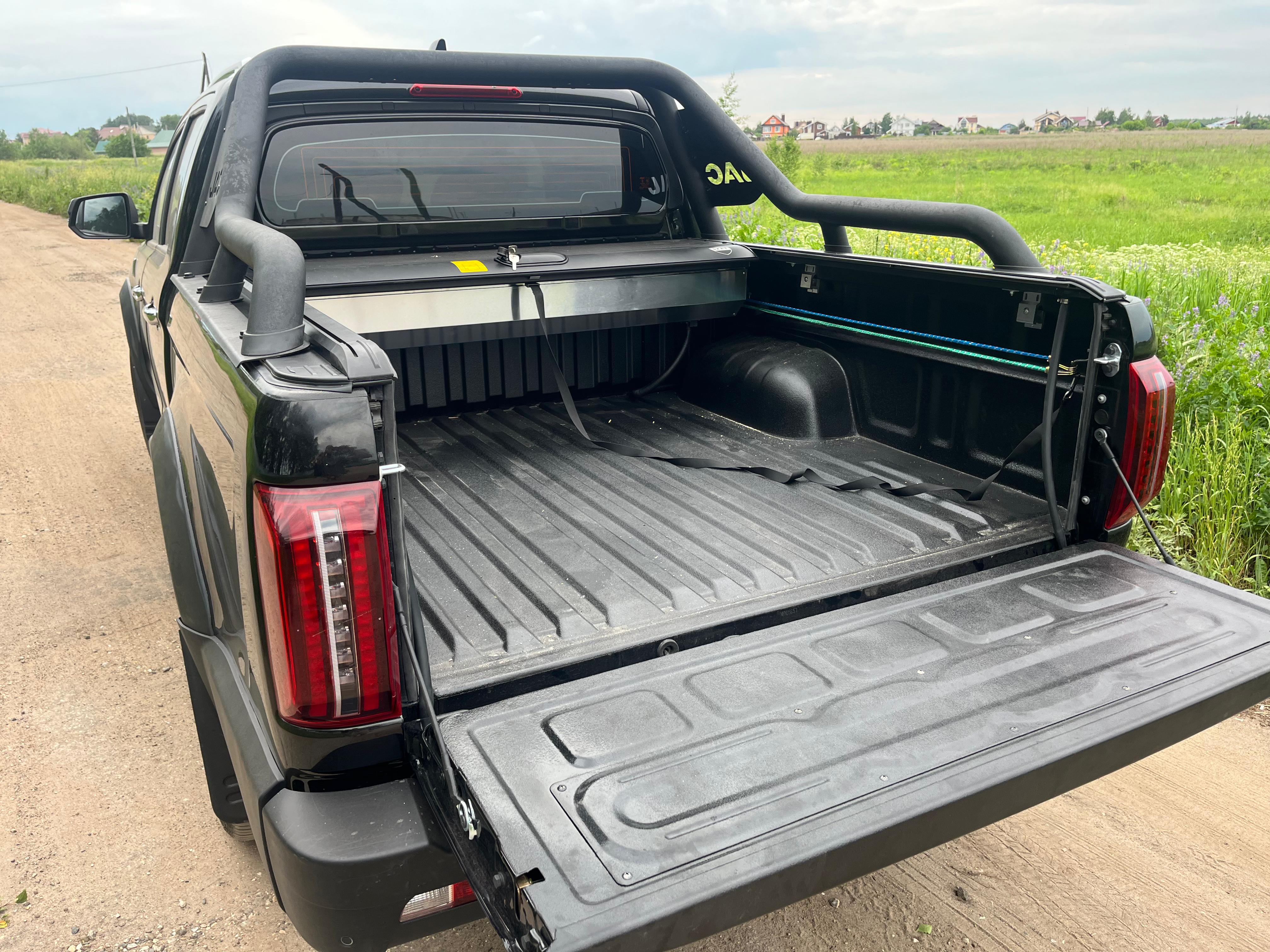 Крышку можно использовать в полностью закрытом, полностью открытом или полузакрытом положении, когда часть груза выступает из кузова – удобно для разных нужд.